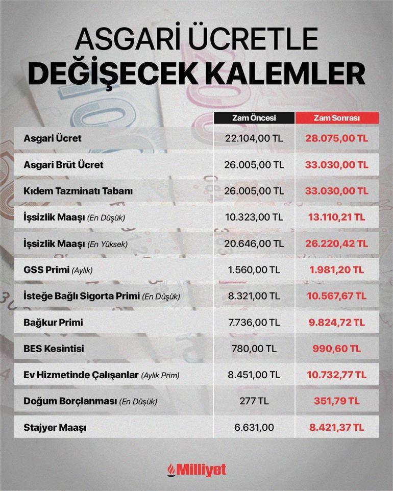 ASGARİ ÜCRET SON DAKİKA HABERLERİ: Kıdem tazminatı tabanı, işsizlik maaşı, GSS primi, askerlik ve doğum borçlanması, stajyer maaşı...