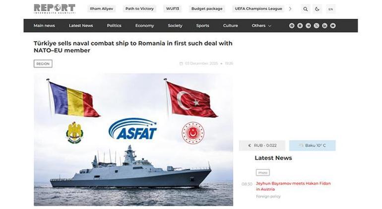Azerbaycan basınından Report.az ise “Türkiye’den NATO-AB üyesi ülkeyle yapılan ilk anlaşma” başlıklı haberinde “Türkiye, Romanya Deniz Kuvvetleri Komutanlığı ile muharebe gemisi ihracat anlaşması imzaladı. Bu, Ankara'nın hem NATO hem de Avrupa Birliği üyesi bir ülkeye ilk kez savaş gemisi sattığı anlamına geliyor. Anlaşma, Türkiye'nin savunma ihracatında önemli bir dönüm noktasını temsil ediyor ve iki ülke arasındaki askeri iş birliğini yeni bir seviyeye taşıyor” ifadelerini kullandı.