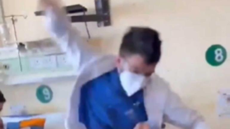 Hastanedeki başka bir görevli tarafından çekilen olayın videosunda, cerrahi maske takan bir doktorun yatakta yatan 36 yaşındaki hasta Arjun Panwar'a defalarca yumruk attığı görüldü.